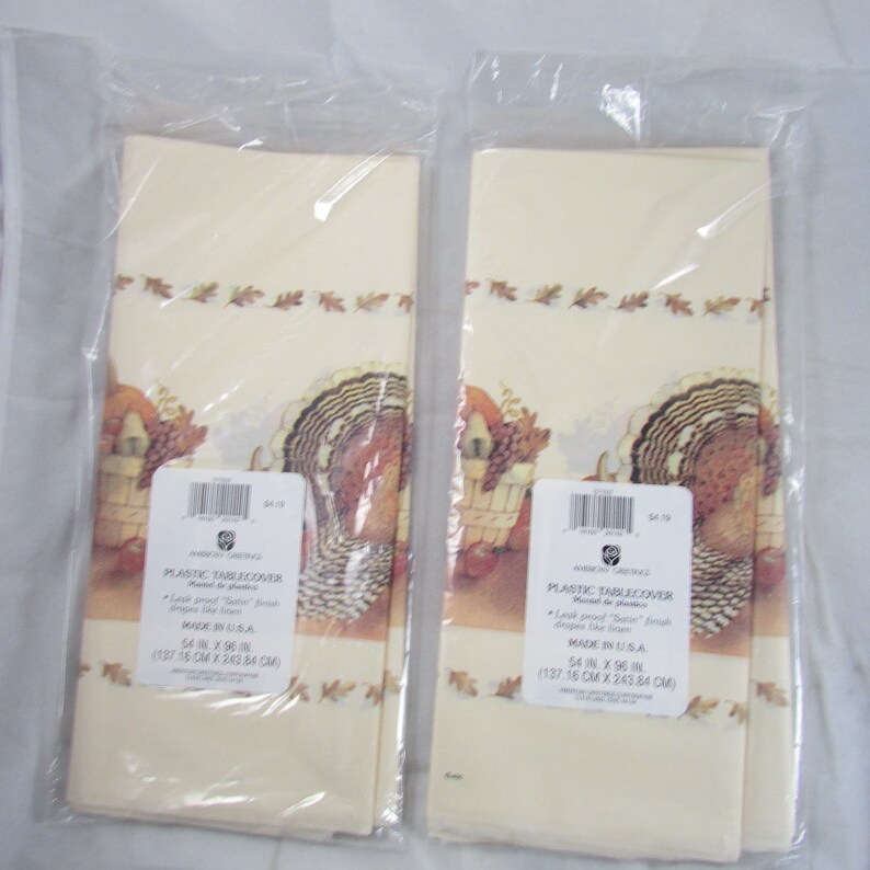 Thanksgiving Table Covers 2 Traditional Turkey Graphics American Greetinbgs 54 X 96 Plastic New In Package Sealed Unused